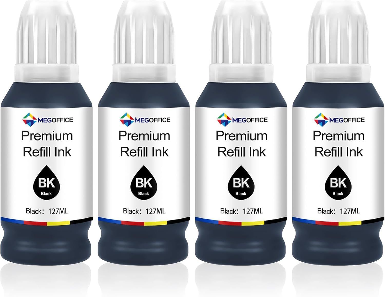 MEGOFFICE ET-104 Recharge d'encre Compatible pour Epson 104 103 102 101 Compatible pour Epson Ecotank ET-2710 2711 2712 2714 2715 2720 2721 2726 2810 2815 2820 2821 2825 2826 4700 4800(4 Noir)