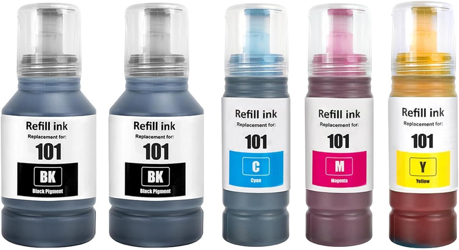 101 Encre Compatible Avec Epson 101 Multipack Bouteille D'Encre Pour Epson Ecotank L4150 L4160 L4260 L4266 L6160 L6170 L6176 L6190 L6260 L6270 L6276 L6290 L14150 (2Noir Cyan Magenta Jaune,5-Pack)