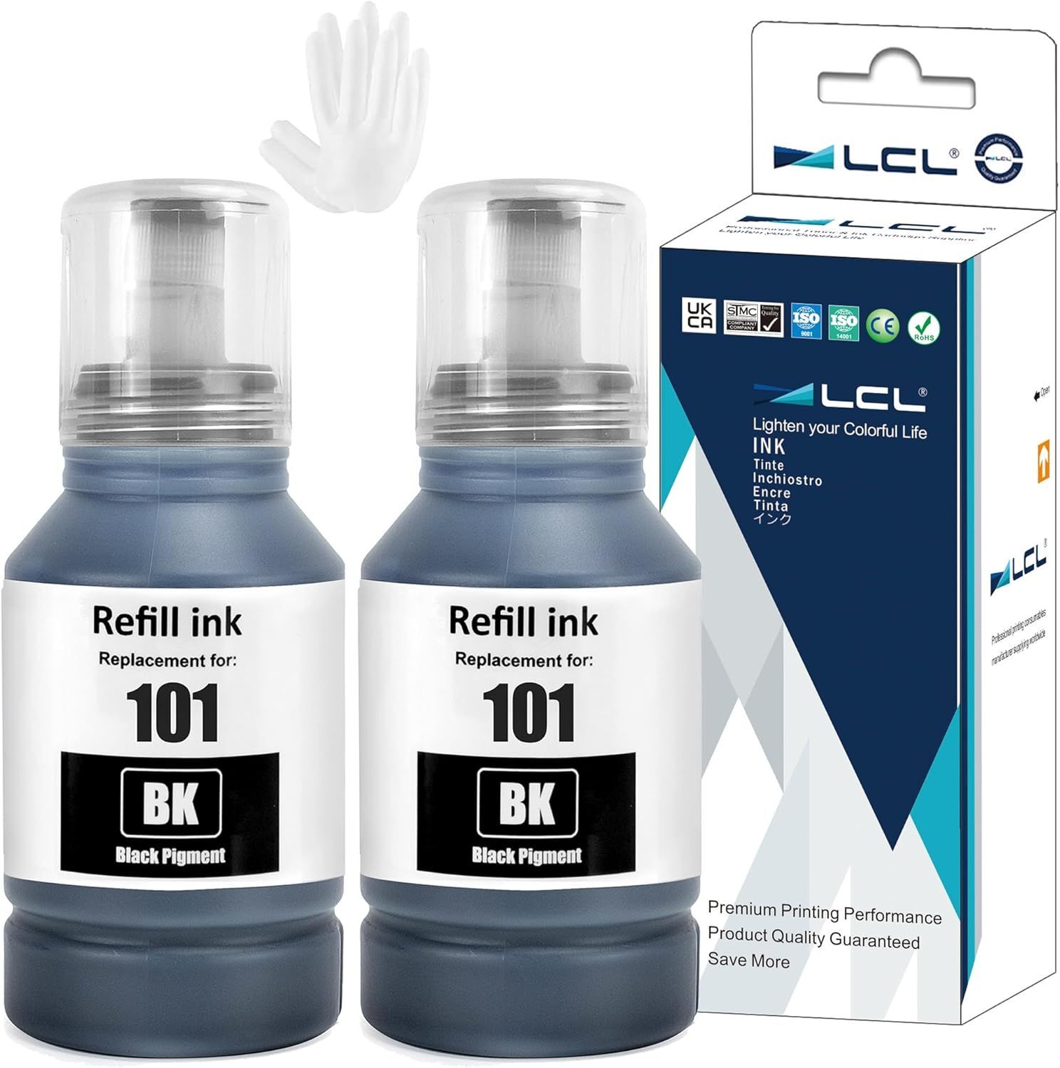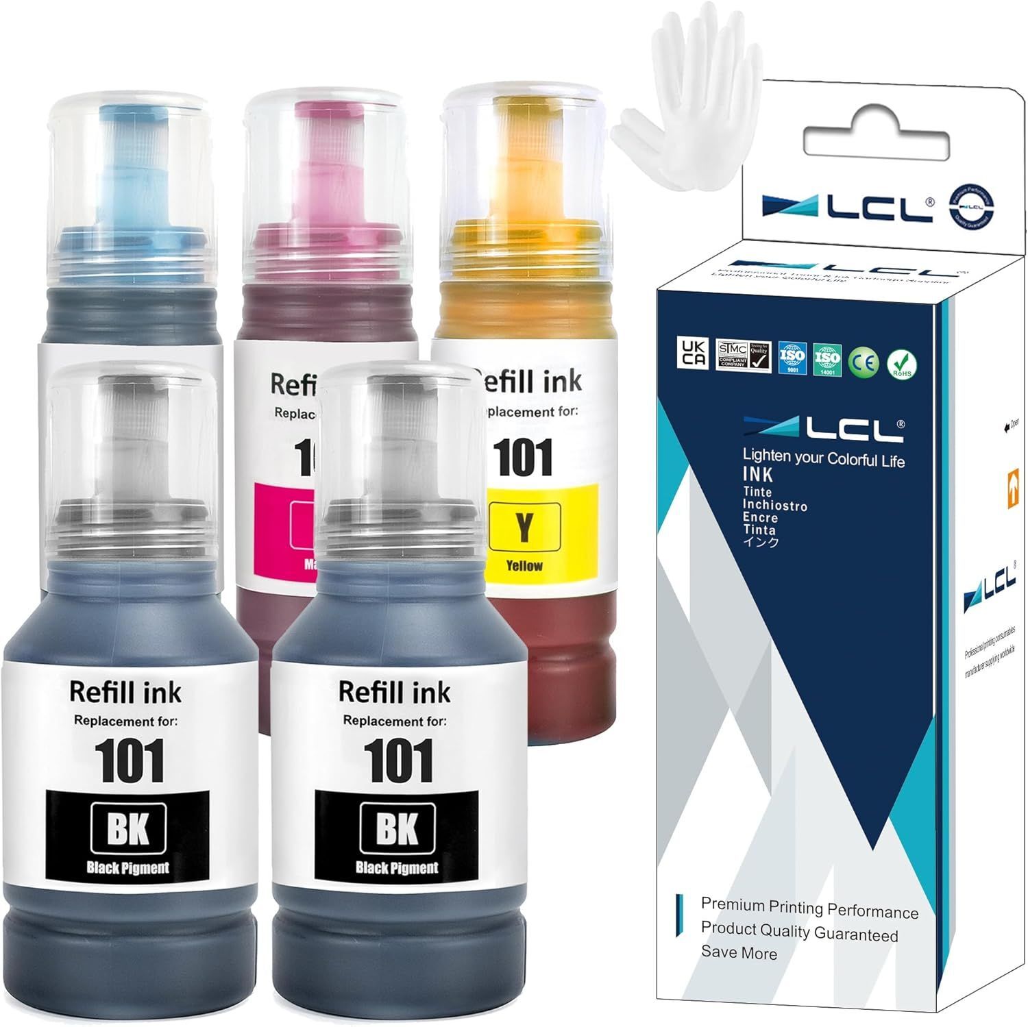 LCL 101 Encre Compatible avec Epson 101 Multipack Bouteille d'encre pour Epson EcoTank L4150 L4160 L4260 L4266 L6160 L6170 L6176 L6190 L6260 L6270 L6276 L6290 L14150 (2Noir Cyan Magenta Jaune,5-Pack)