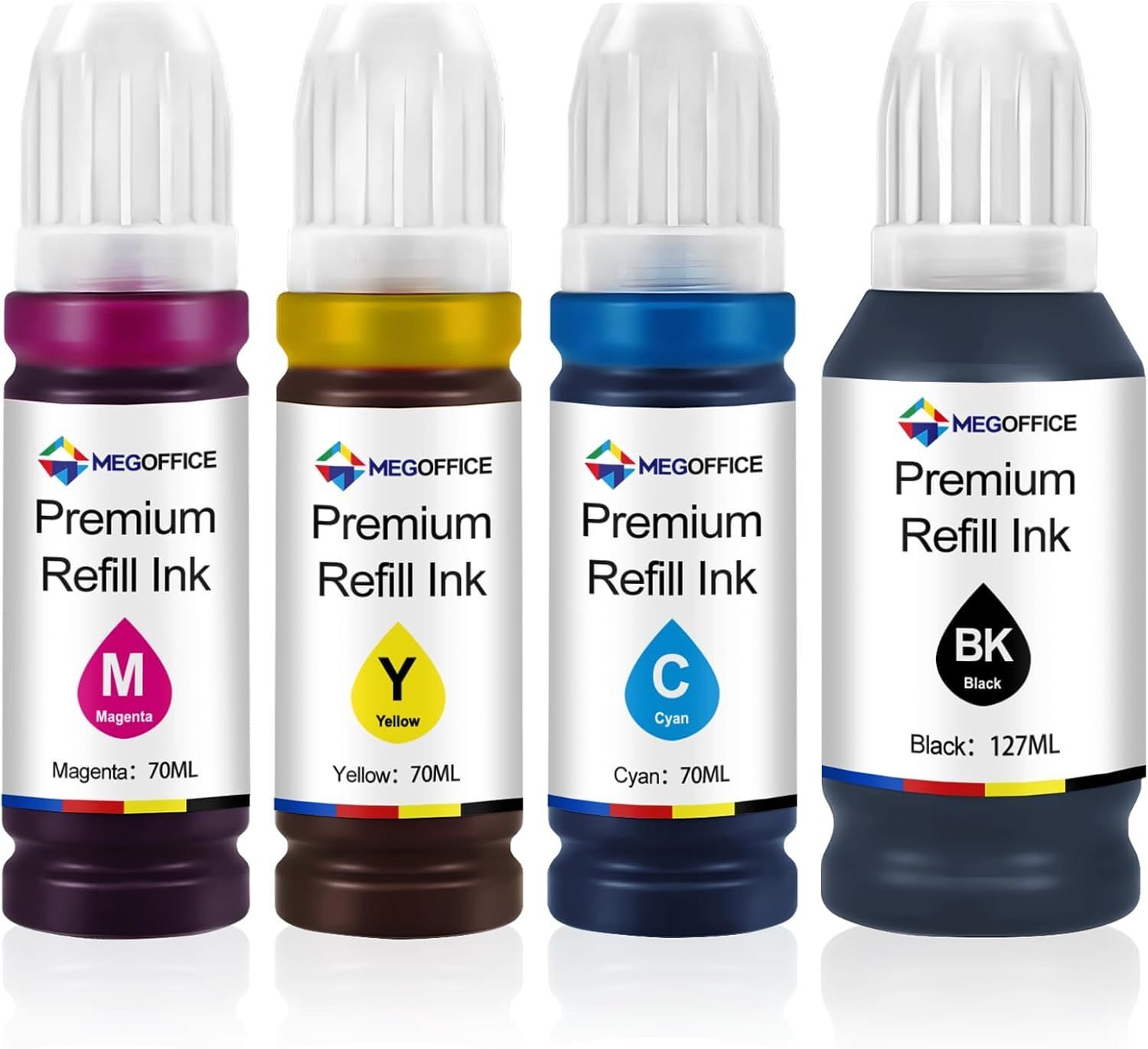 MEGOFFICE ET-104 Recharge d'encre Compatible pour Epson 104 103 102 101 Compatible pour Epson Ecotank ET-2710 2711 2712 2714 2715 2720 2721 2726 2810 2815 2820 2821 2825 2826 4700 4800(4 Pack)