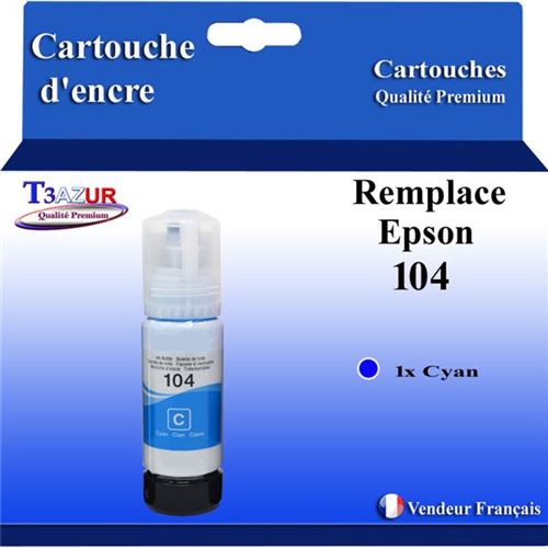 T3AZUR - Bouteille compatible avec Epson 104 EcoTank ET-2710, ET-2720, ET-2750 - Cyan
