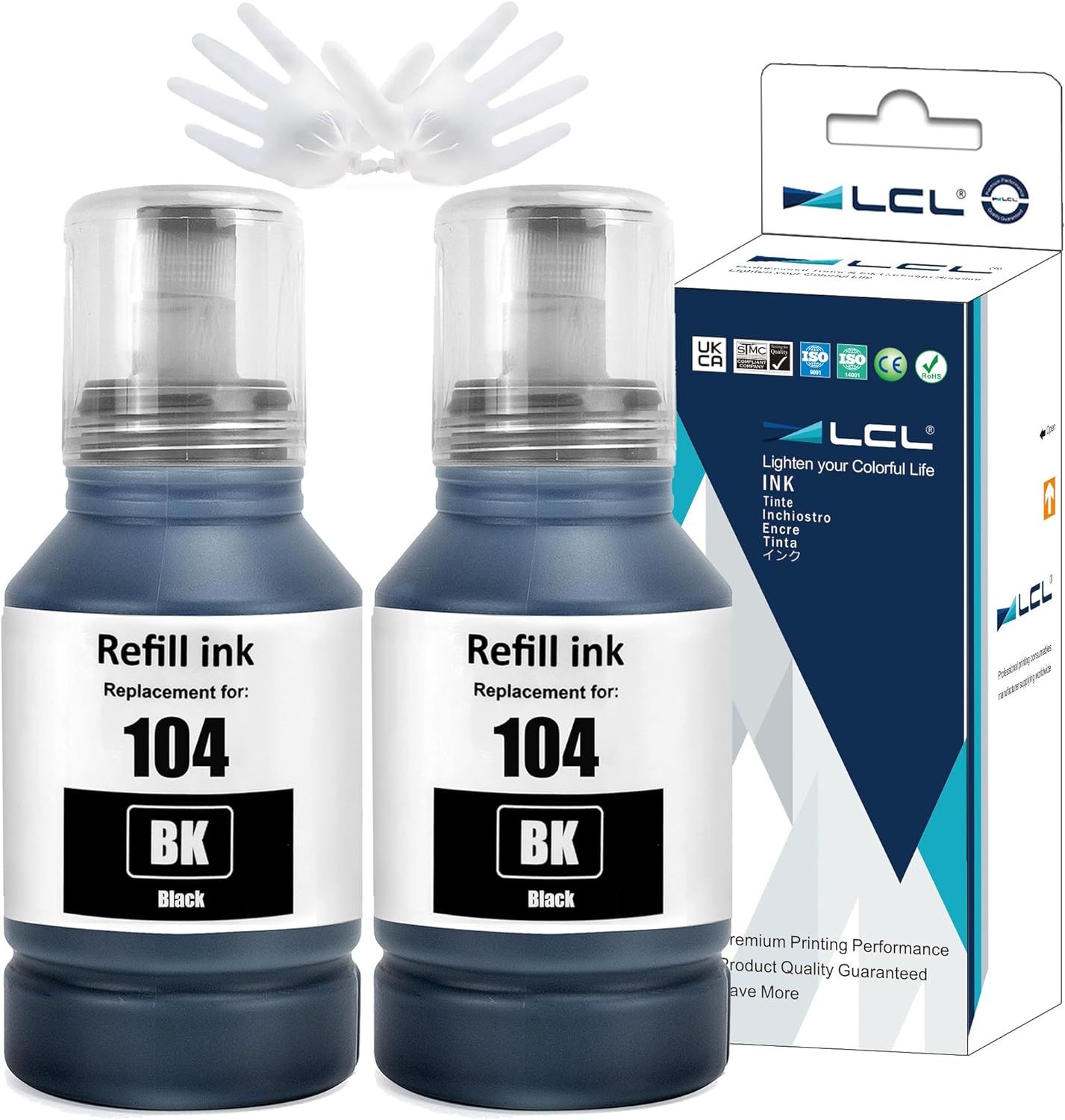 LCL 104 Haute capacité Encre Compatible pour Epson 104 Noir Bouteille d'encre Compatible pour Epson EcoTank ET-1810 ET-2710 ET‑2711 ET-2712 ET-2714 ET-2715 ET-2720 ET-2721 ET-2726 ET-2810 (2-Pack)