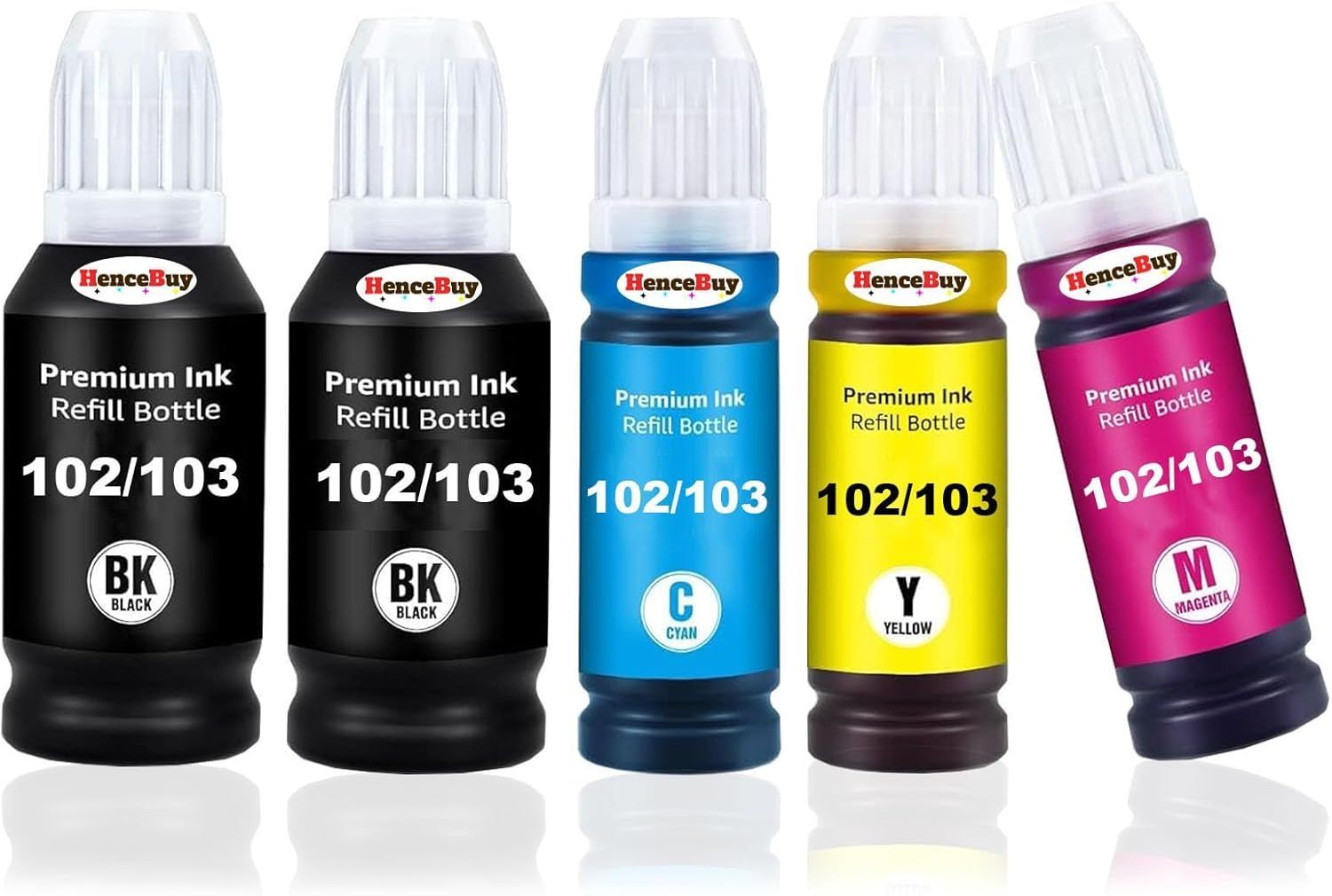 HenceBuy 102 104 Encre Compatible avec Epson 104 & Epson 102 Bouteille d'encre Multipack pour Ecotank ET-2870 ET-2820 ET-2850 ET-2856 ET-2810 ET-2826 ET-3850 ET-4850 ET-4856 ET-2750 ET-2720 ET-2710