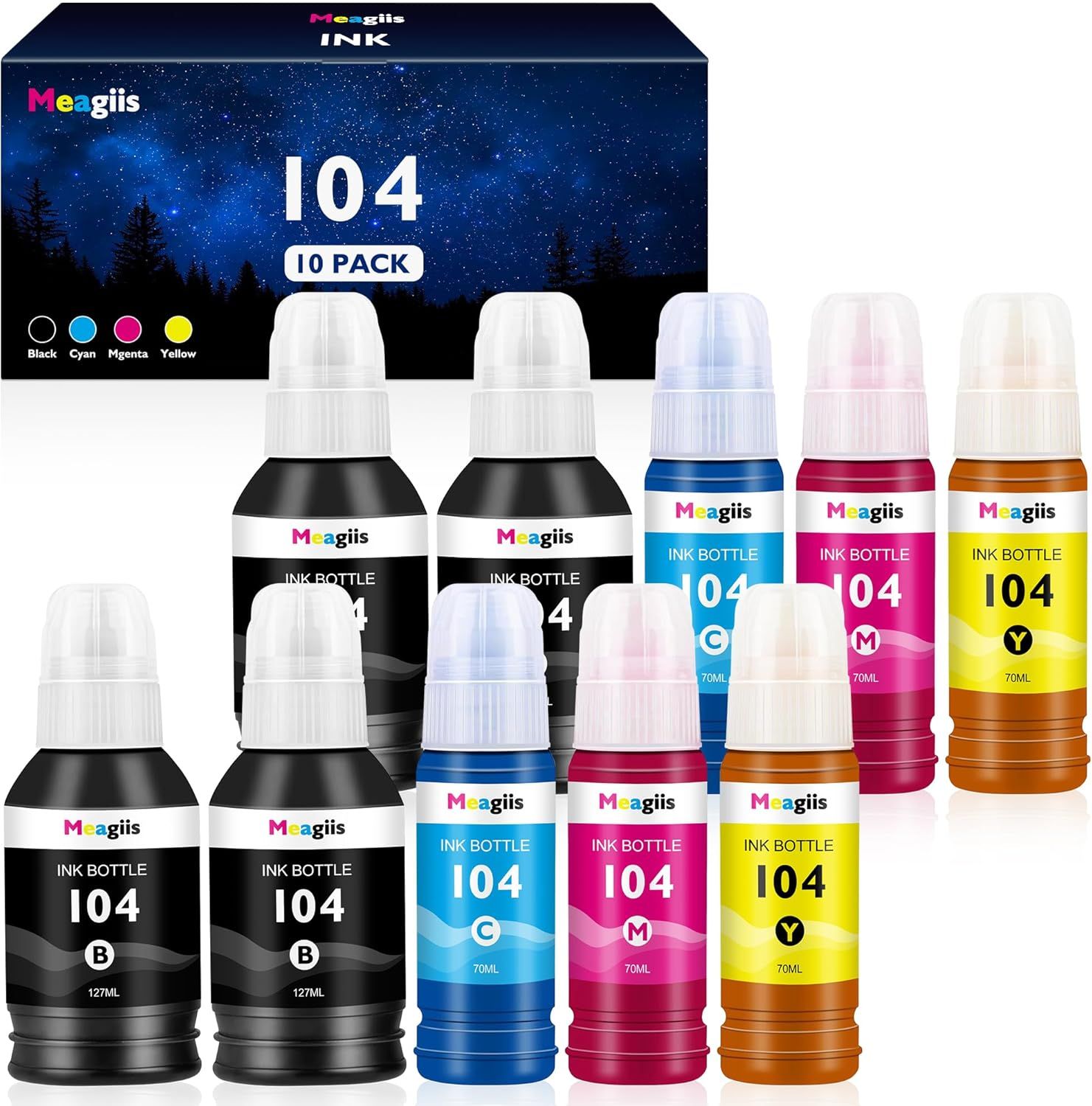 MEGOFFICE ET-104 Recharge d'encre Compatible pour Epson 104 103 102 101 Compatible pour Epson Ecotank ET-2710 2711 2712 2714 2715 2720 2721 2726 2810 2815 2820 2821 2825 2826 4700 4800(10 Pack)