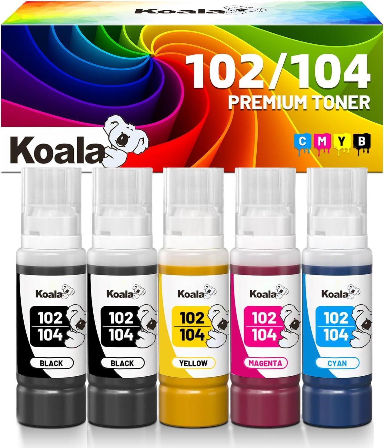 Koala 5-Pack Compatible Cartouche d’Encre pour Epson 102 104 pour EcoTank ET-2700 ET-2710 ET-2720 ET-2750 ET-2810 ET-2820 ET-3700 ET-3750 ET-4700 ET-4750 ET-15000 (BCMY, 5 x 70ml)