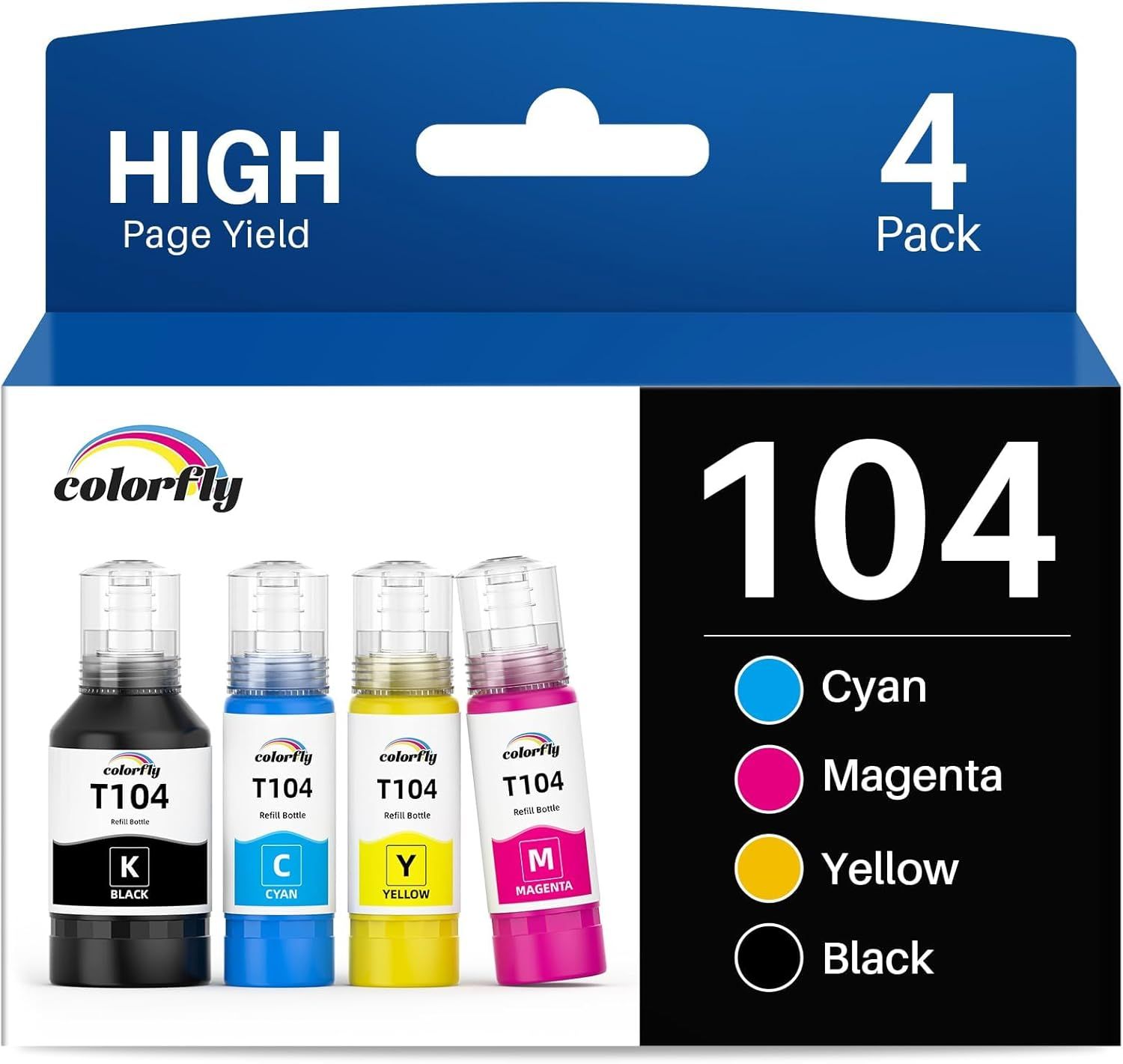 colorfly 104 Encre Compatible avec Epson Multipack 104 102 EcoTank pour EcoTank ET-2710 ET‑2711 ET-2715 ET-2720 ET-2726 ET-2700 ET-2750 ET-2756 ET-2810 ET-37 000 ET- 3750 ET-4700 ET-4750
