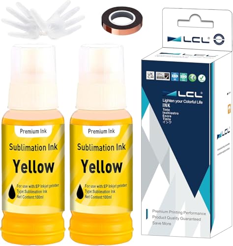 LCL 200ML Recharge d'encre à Sublimation (2 Jaune) Remplacement pour Epson EcoTank ET-2700 ET-2750 ET-2751 ET-2756 ET-3700 for Heat Transfer Mug Tumbler T Shirts(Autofill/Upgrade Version/ICC Free)