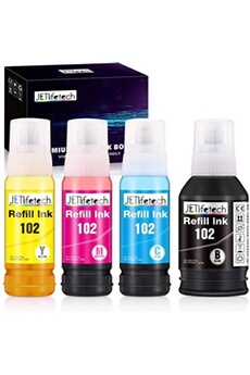 Jettruemedia 102 Encre Multipack Compatible avec Epson EcoTank ET-2850 ET-3850 ET-4850 ET-2700 ET-2856 ET-2750 ET-2751 ET-2756 ET-3700 ET-3750 ET-4750 ET -2851 ET-4856 ET-15000 (Noir, C, M, Jaune)