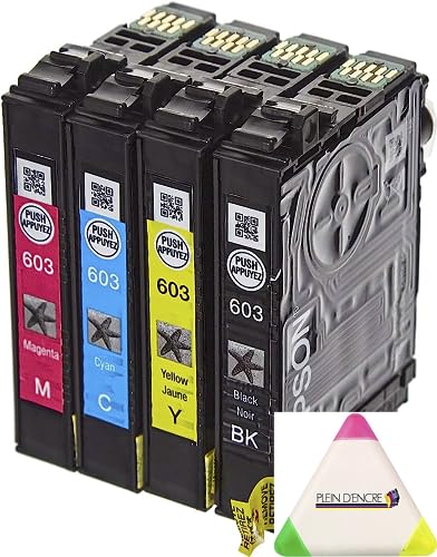 Multipack 4 Cartouches 603 Etoile de mer pour imprimante Epson Expression Home XP 3105 XP3105 XP-3105 + Un surligneur Plein d'encre 3 Couleurs Offert