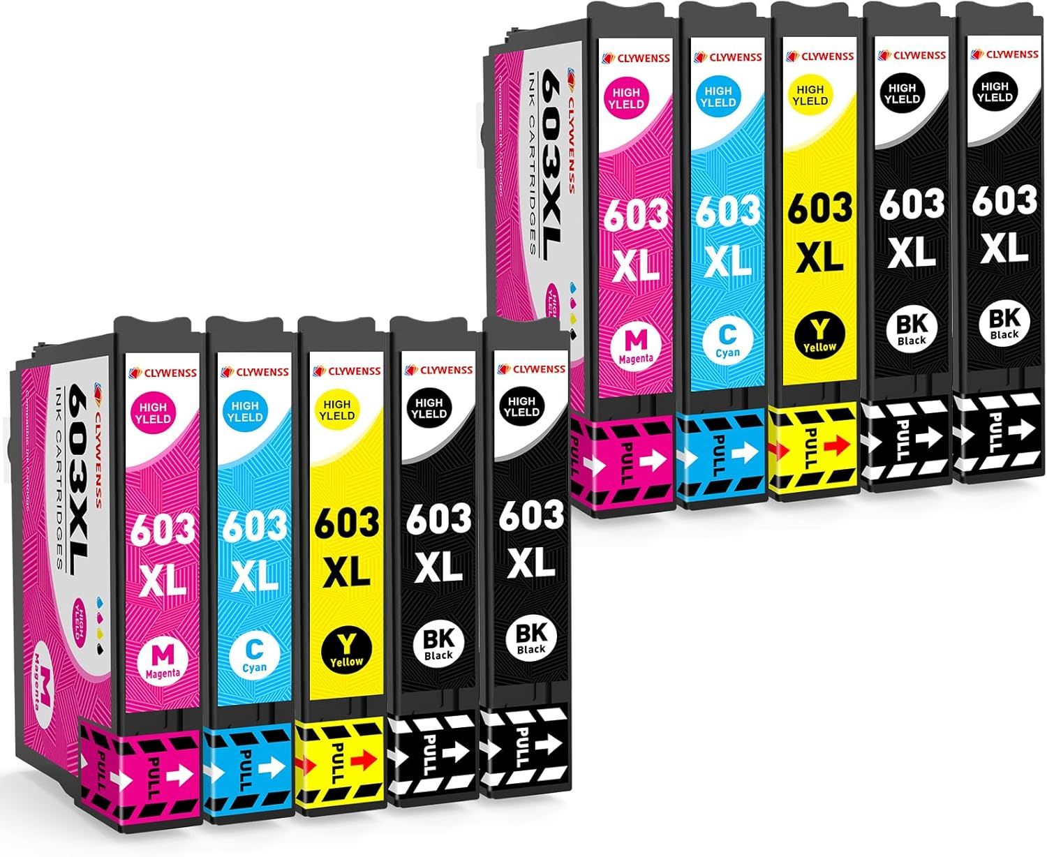 CLYWENSS 603XL 603 XL Cartouche d'encre Multipack Compatibles avec Epson Expression Home XP-2100 XP-2105 XP-2150 XP-2155 XP-3100 XP-3150 XP-3155 XP-4100 4150 WorkForce WF-2810 WF-2820 WF-2830, 10-Pack