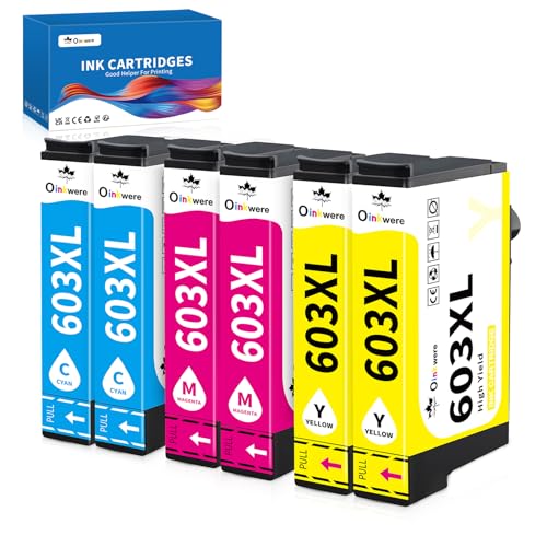 OINKWERE Paquete de 6 Cartouches 603XL Multipack Compatible pour Epson 603XL Cartouche 603 XL pour XP-2100 XP-2105 XP-3100 XP-3105 XP-4100 XP-4105 Workforce WF-2810 WF-2830 WF-2835 WF-2850
