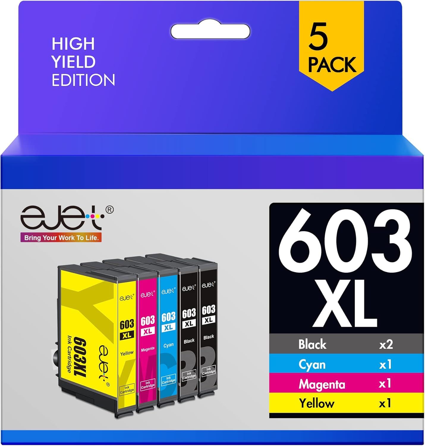Cartouche d'Encre 603 XL, 603, 603xl - Rechange pour Epson 603, 603 XL, Epson Multipack 603, XP-2100 XP-2105 XP-3100 XP-4100 Workforce WF-2810 WF-2830 WF-2850 (5 Paquets)