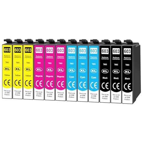 603XL 603 XL Ink Cartridge for Epson 603 XL Multipack for Epson Expression Home XP-2100 XP-2105 XP-2150 XP-2155 XP-3100 XP-3150 XP-3155 XP-4100 XP-4150 WF-2810 (12-Pack)