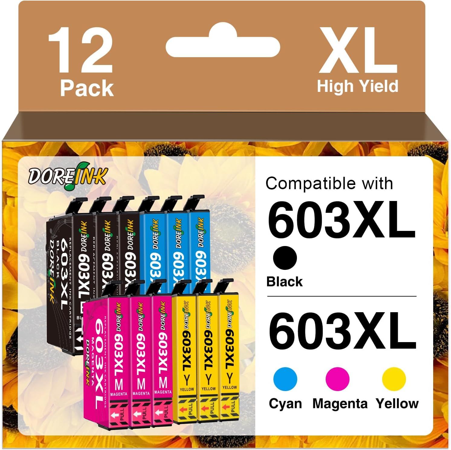 603XL Ink Cartridge for Epson 603 XL Multipack for Epson Expression Home XP-2100 XP-2105 XP-2150 XP-2155 XP-3100 XP-3150 XP-3155 XP-4100 XP-4150 WF-2810 WF-2820 WF-2830 Pack of 12)