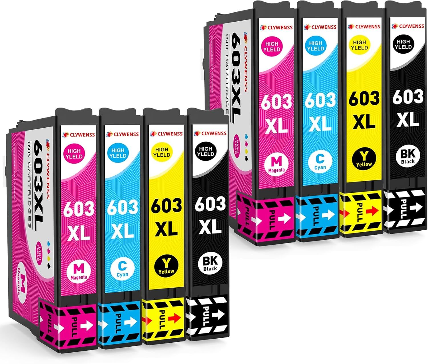CLYWENSS 603XL 603 XL Cartouches d'encre Multipack Compatibles avec Epson Expression Home XP-2100 XP-2105 XP-2150 XP-2155 XP-3100 XP-3150 XP-3155 XP-4100 4150 WorkForce WF-2810 WF-2820 WF-2830, 8-Pack