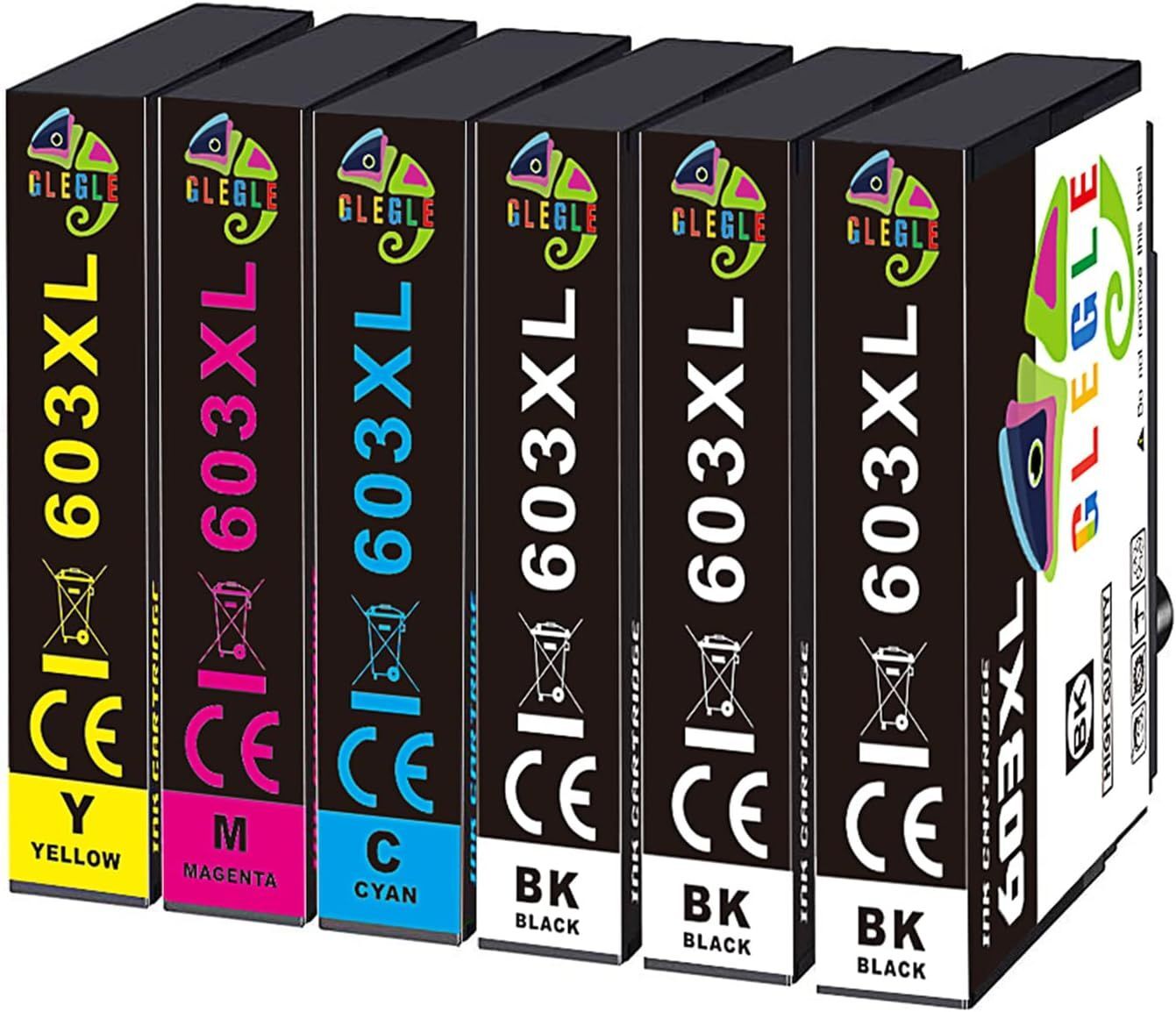 CLYWENSS 603XL 603 XL Cartouches d'encre Multipack Compatibles avec Epson Expression Home XP-2100 XP-2105 XP-2150 XP-2155 XP-3100 XP-3150 XP-3155 XP-4100 4150 WorkForce WF-2810 WF-2820 WF-2830, 6-Pack