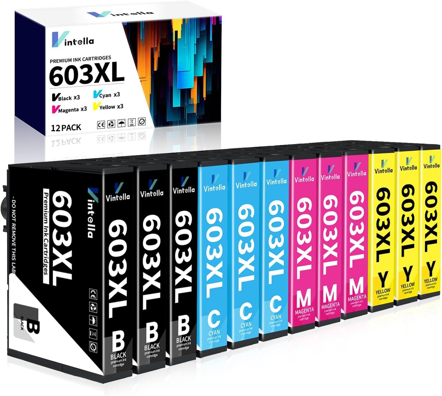 Vintella 603XL Cartouche d'encre pour Epson 603 XL Multipack pour Epson Expression Home XP-2100 XP-2105 XP-2150 XP-2155 XP-3100 XP-3150 XP-3155 XP-4100 XP-4150 WF-2810 WF-2820 WF-2830 (Paquet de 12)