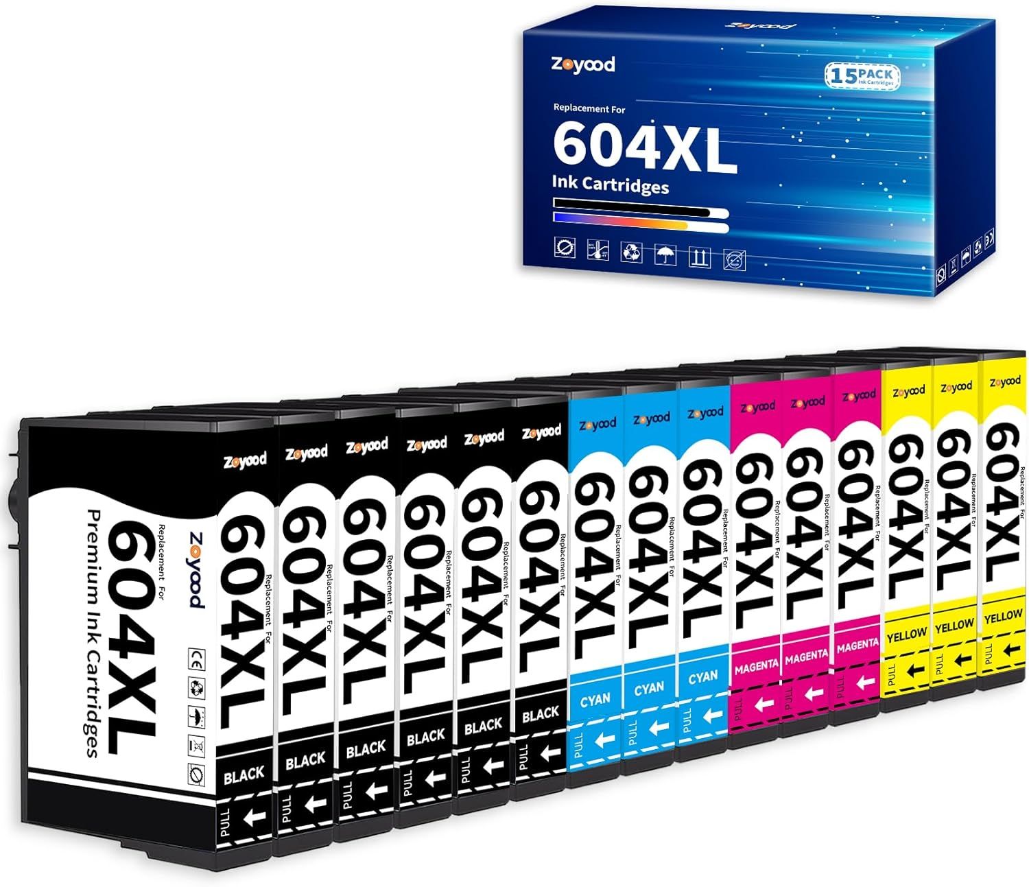 Zoyood 604XL Cartouches d'encre Compatible avec Epson 604 XL Multipack pour Expression Home XP-2200 XP-2205 XP-3200 XP-3205 XP-4200 XP-4205 Workforce WF-2910 WF-2930 WF-2935 WF-2950 (Lot de 15)