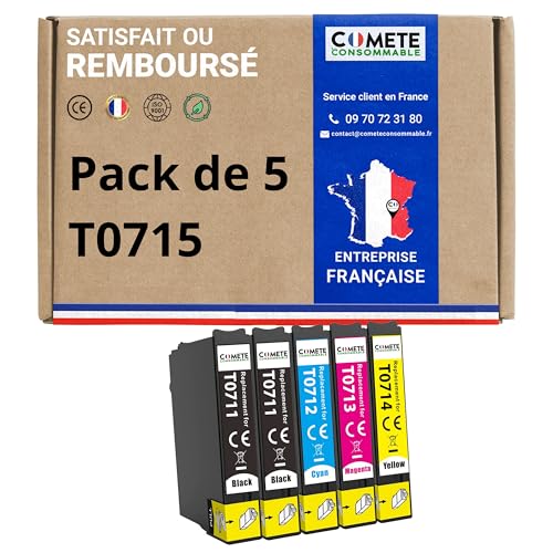 Comete, Marque Française - T0715-5 Cartouches D'Encre Compatibles Avec Epson T0715 Guépard - Pour Epson Stylus Sx205 Sx218 Sx400 Sx510W Sx515W Dx7450 Dx8450 (2 Noir Et 3 Couleur)[ENC940154]