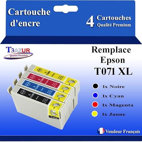 T3AZUR- 4X Cartouches Compatibles avec Epson T0711 remplace Epson Stylus Office SX405 SX410 SX415 SX510W SX515W SX600FW SX610FW