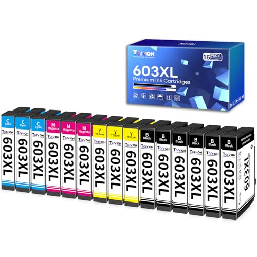 Torvon Cartouches d'encre 603XL compatibles pour epson Cartouches 603XL Multipack pour Expression Home XP-2100 XP-2105 XP-2150 XP-3100 XP-3150 XP-4100 WF-2810 WF-2820 WF-2830 (Lot de 15)