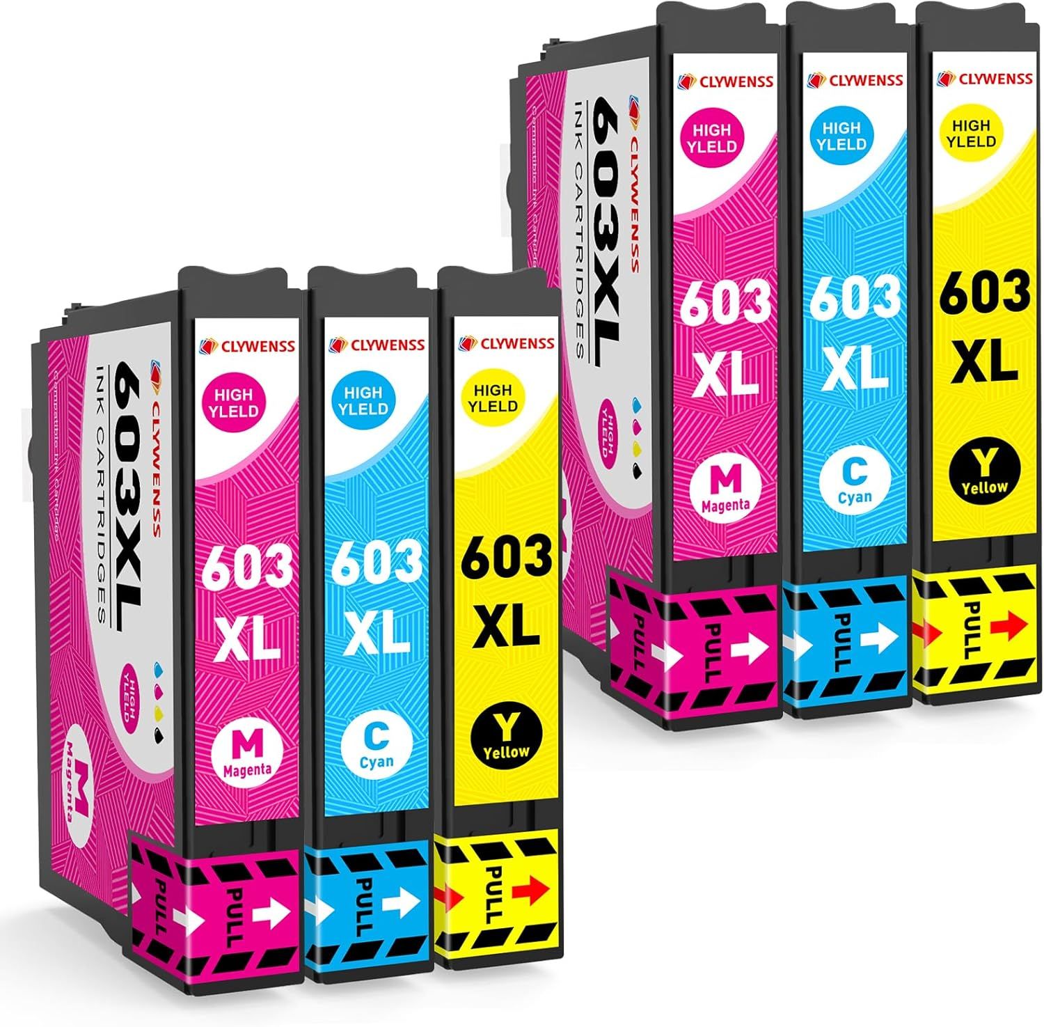 CLYWENSS 603XL 603 XL Cartouches d'encre Multipack Compatibles avec Epson Expression Home XP-2100 XP-2105 XP-2150 XP-2155 XP-3100 XP-3150 XP-3155 XP-4100 4150 WorkForce WF-2810 WF-2820 WF-2830, 6-Pack
