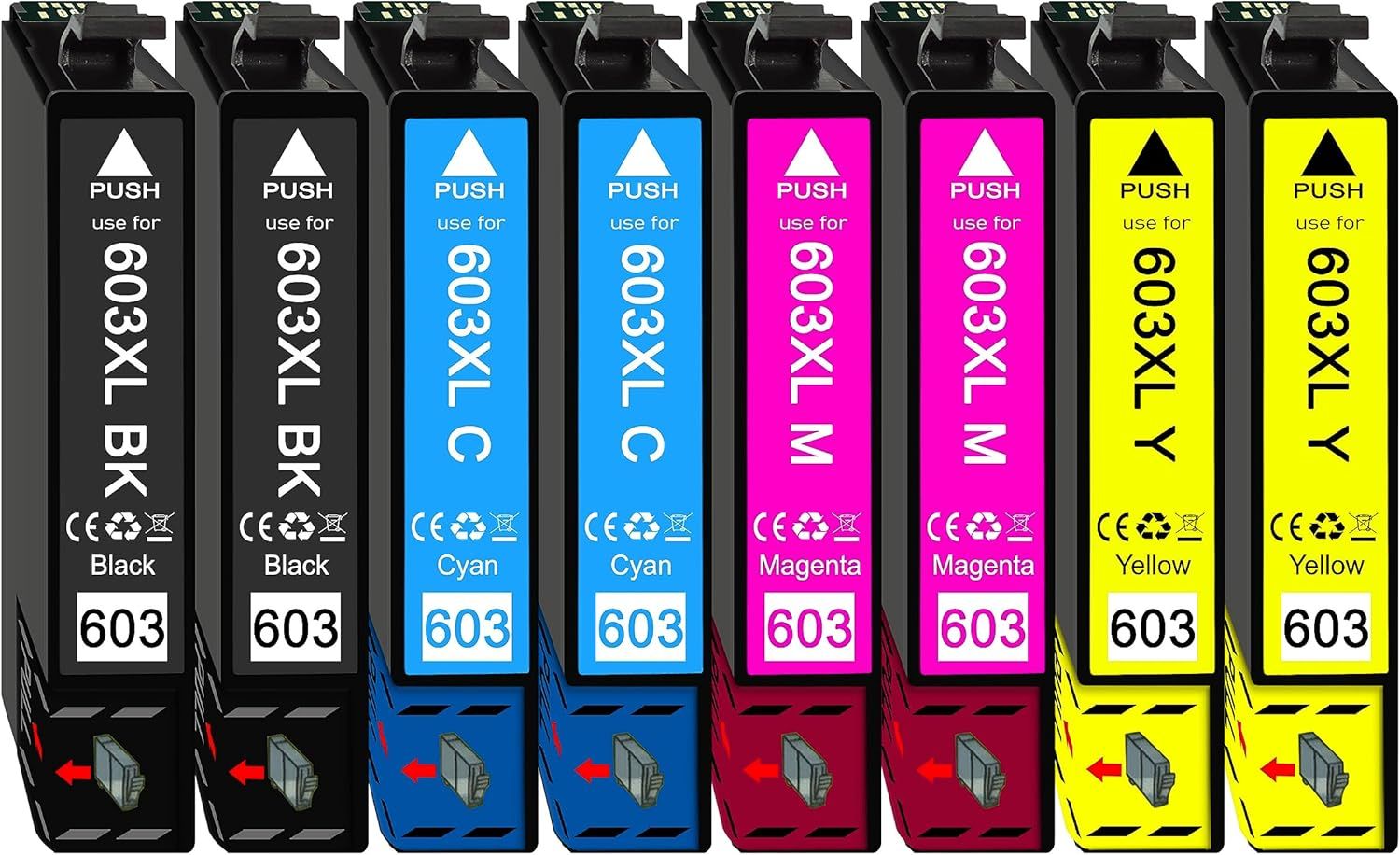 Lot de 8 cartouches compatibles avec Epson 603xl Expression Home XP-2100 XP-2150 XP-3150 XP-4100 XP-4150 XP-2155 XP-3155 XP-4155 Workforce WF-2810 WF-2820