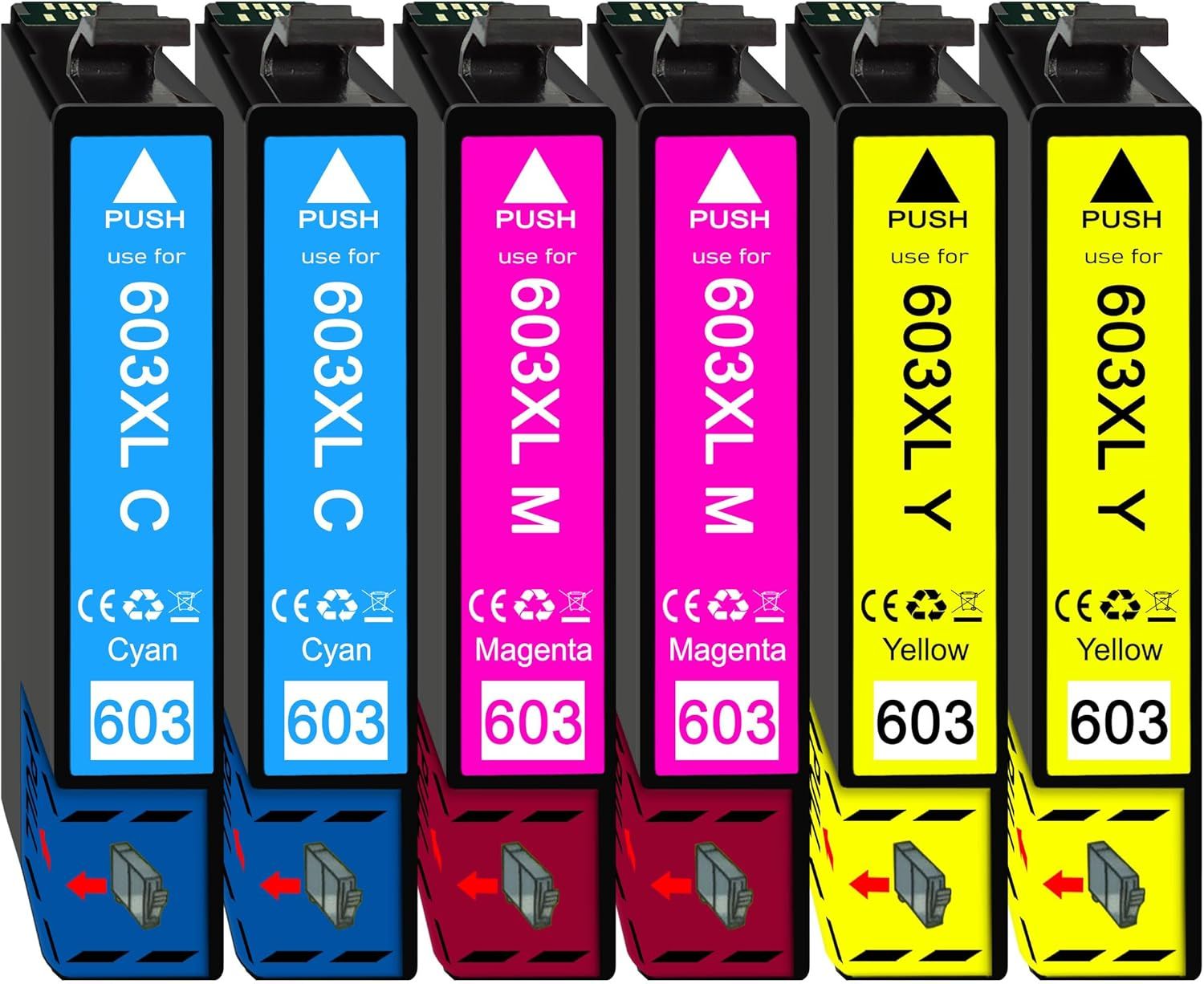 603XL Ink Cartridge for Epson 603 XL Multipack for Epson Expression Home XP-2100 XP-2105 XP-2150 XP-2155 XP-3100 XP-3150 XP-3155 XP-4100 XP-4150 WF-2810 WF-2820 (3 Cyan, 3 Magenta, 3 Yellow)