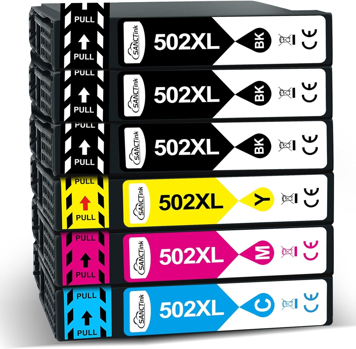 SANCTink 502 XL Cartouche Compatible pour Epson 502XL Cartouche d'encre pour Epson Workforce WF-2860 WF-2865 WF-2880 WF-2885 XP-5100 XP-5105 XP-5155 XP-5150, 6pack
