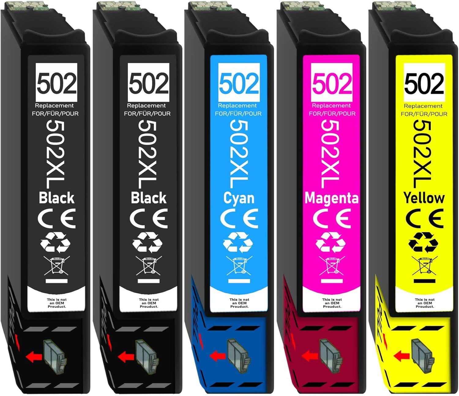 LeciRoba 502xl Pour Encre Epson 502 et Cartouche 502xl, Compatible Avec WF-2860 et XP-5100 5105 5150 5155 WF-2865 2880 2885 Imprimante (5 Paquets)