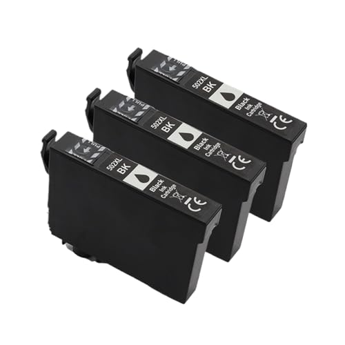 Cartouche d'encre Compatible avec Epson T502XL 502XL 502 XL, Puce, for Jet XP-5100 XP-5105 WF-2860DWF WF-2865DWF WF-2880 WF-2885(3 BK)