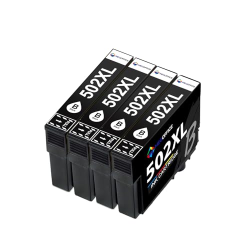 MEGOFFICE 502XL Cartouches d'encre compatibles pour Epson 502 XL pour Expression Home XP-5100 XP-5105 XP-5150 Workforce WF-2860DWF WF-2865DWF WF-2880DWF(4 Noirs)