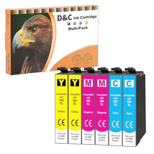 D&C 502XL Cartouches d'encre Compatible pour Epson 502 502 XL pour Epson Workforce WF-2880 WF-2860DWF WF-2865 WF-2865DWF, Home XP-5100 XP5100 XP-5105 XP5105 (2Cyan 2Magenta 2Jaune, 6-Pack)