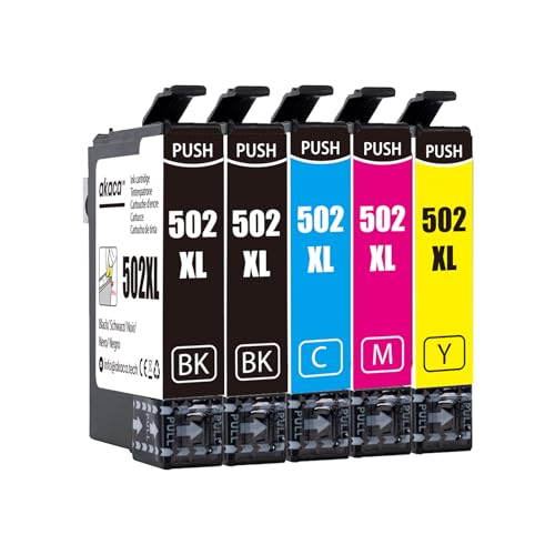 akaca 502XL (Pack de 5) Cartouches d'encre Compatibles avec Epson 502 XL, pour Expression Home XP 5100 XP-5105 XP-5150 XP-5155, Workforce WF-2860DWF WF-2865DWF WF-2880DWF