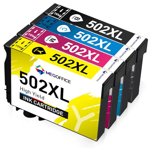MEGOFFICE 502XL Cartouches d'encre compatibles pour Epson 502 XL pour Expression Home XP- 5100 XP-5105 XP-5150 Workforce WF-2860DWF WF-2865DWF WF-2880DWF Imprimante(4 Pack)