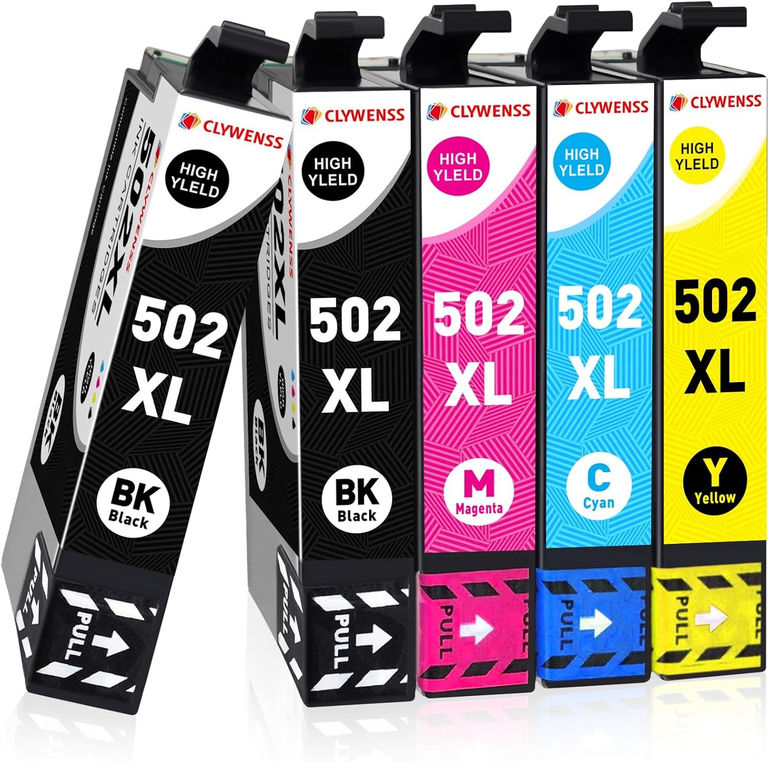 Clywenss 502XL 502 XL Cartouches d'encre Multipack Compatibles avec Epson Expression Home XP-5100 XP-5105 XP-5150 XP-5155 XP5100 XP5105 XP5150 XP5155 Workforce WF-2860 WF-2865 WF-2880 WF-2885, 5-Pack
