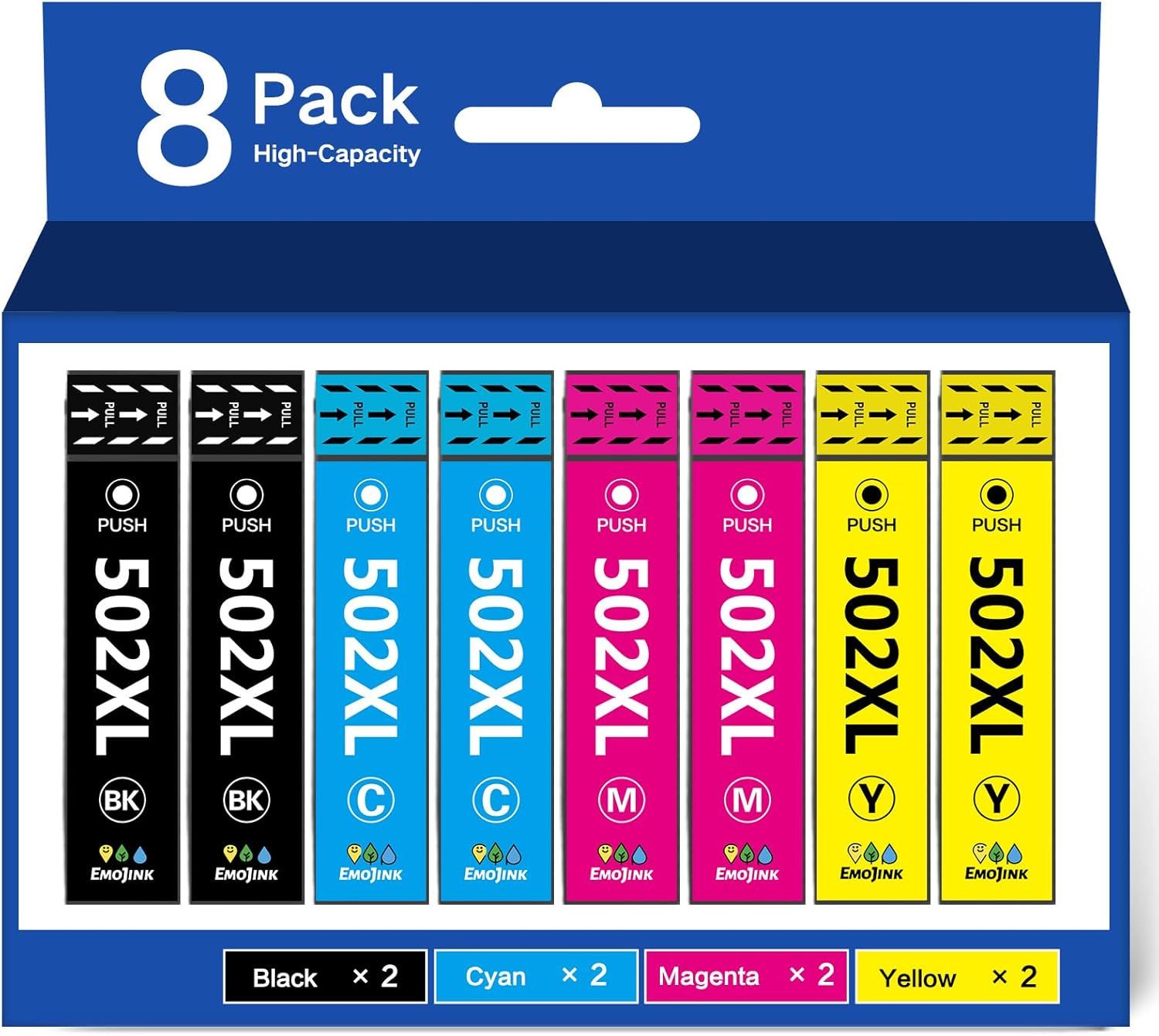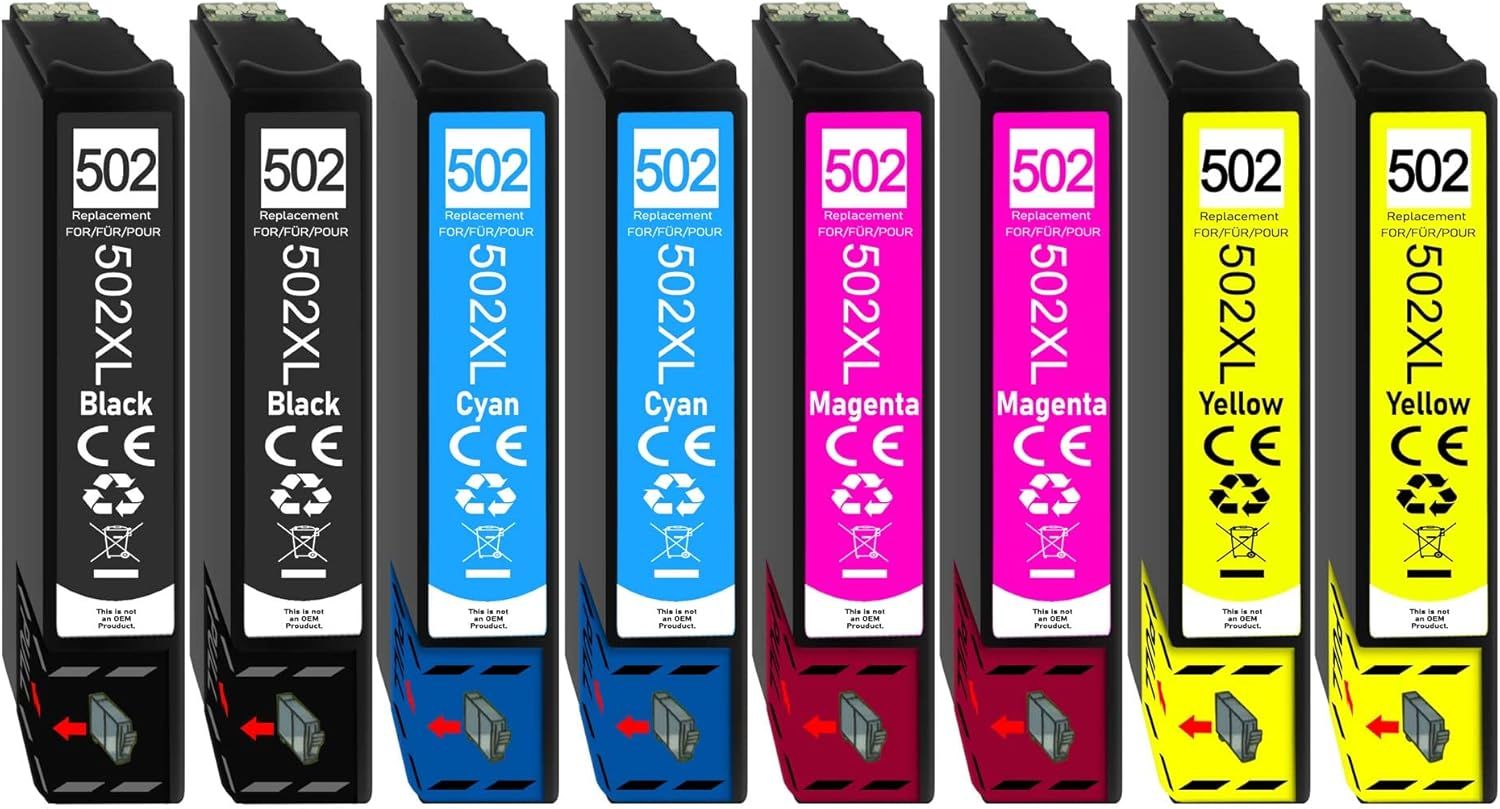 502 Xl Cartouches D'Encre Compatible Pour Epson 502 Xl 502Xl Pour Expression Home Xp-5100 Xp-5105 Xp-5150 Xp-5155 Workforce Wf-2865 Wf-2880 Wf-2885,8 Pack