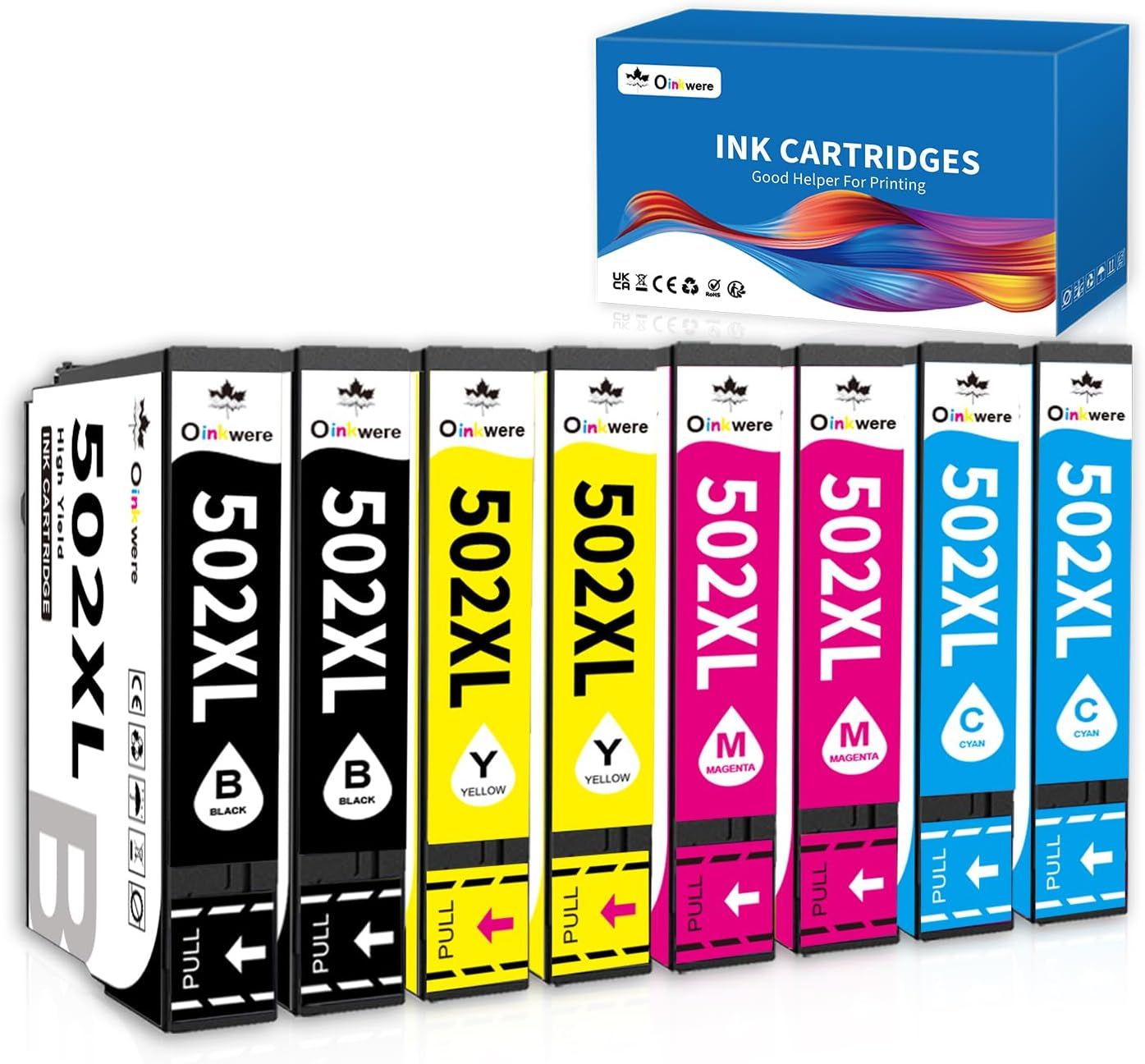 OINKWERE 502XL Cartouches d'encre Compatible pour Epson 502 XL Cartouches Multipack pour Expression Home XP-5150 XP-5100 XP-5155 XP-5105 Workforce WF-2860 WF-2865 WF-2880 WF-2885 (8 Paquets)