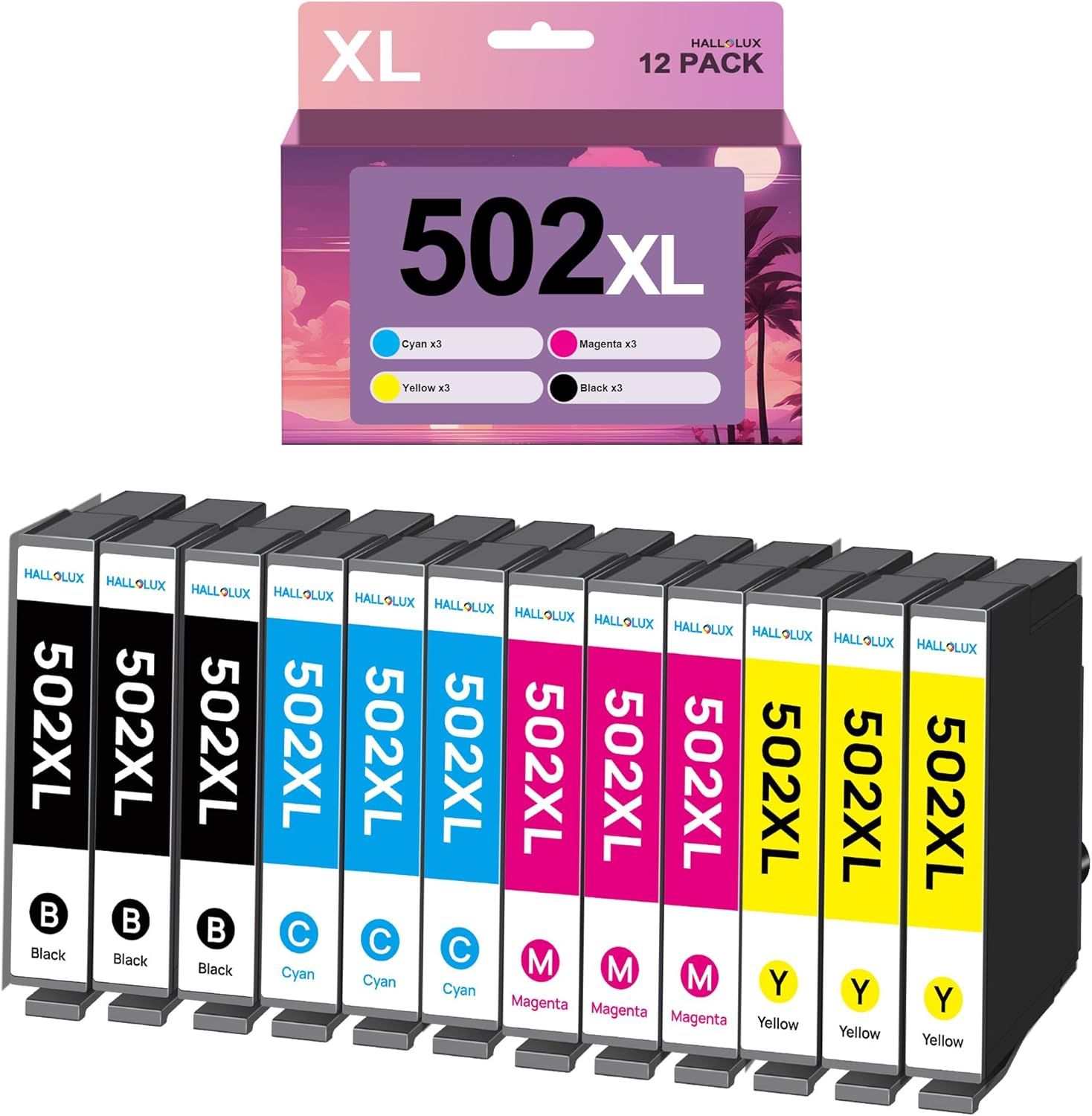 HALLOLUX 502XL Cartouches d'encre Compatible pour Epson 502 XL Cartouches Multipack pour Expression Home XP-5150 XP-5100 XP-5155 XP-5105 Workforce WF-2860 WF-2865 WF-2880 WF-2885 (12 Pack)