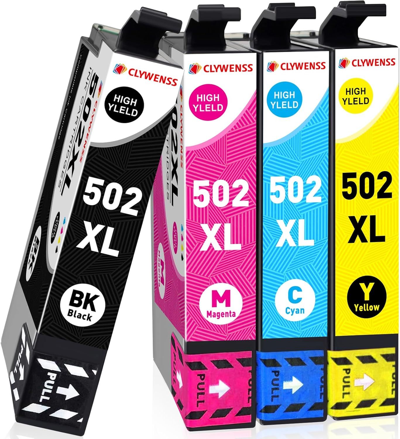 Clywenss 502XL 502 XL Cartouches d'encre Noir Compatibles avec Epson Expression Home XP-5100 XP-5105 XP-5150 XP-5155 XP5100 XP5105 XP5150 XP5155 Workforce WF-2860 WF-2865 WF-2880 WF-2885 DWF, 4-Noire