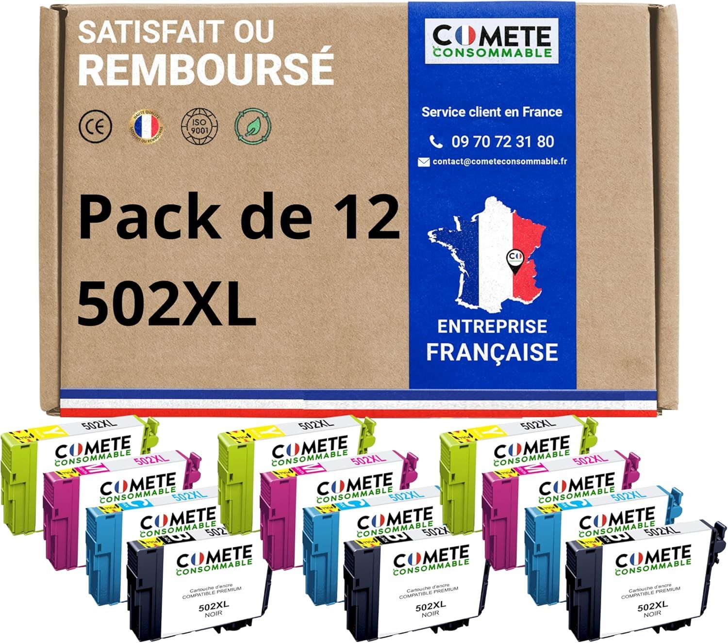 COMETE, Marque française - 502XL - 12 Cartouches d'encre Compatibles avec Epson 502 XL - pour Epson Expression Home XP-5105 XP-5150 Workforce WF-2860 WF-2865 WF-2880 WF-2885 (3 Noir et 9 Couleur)
