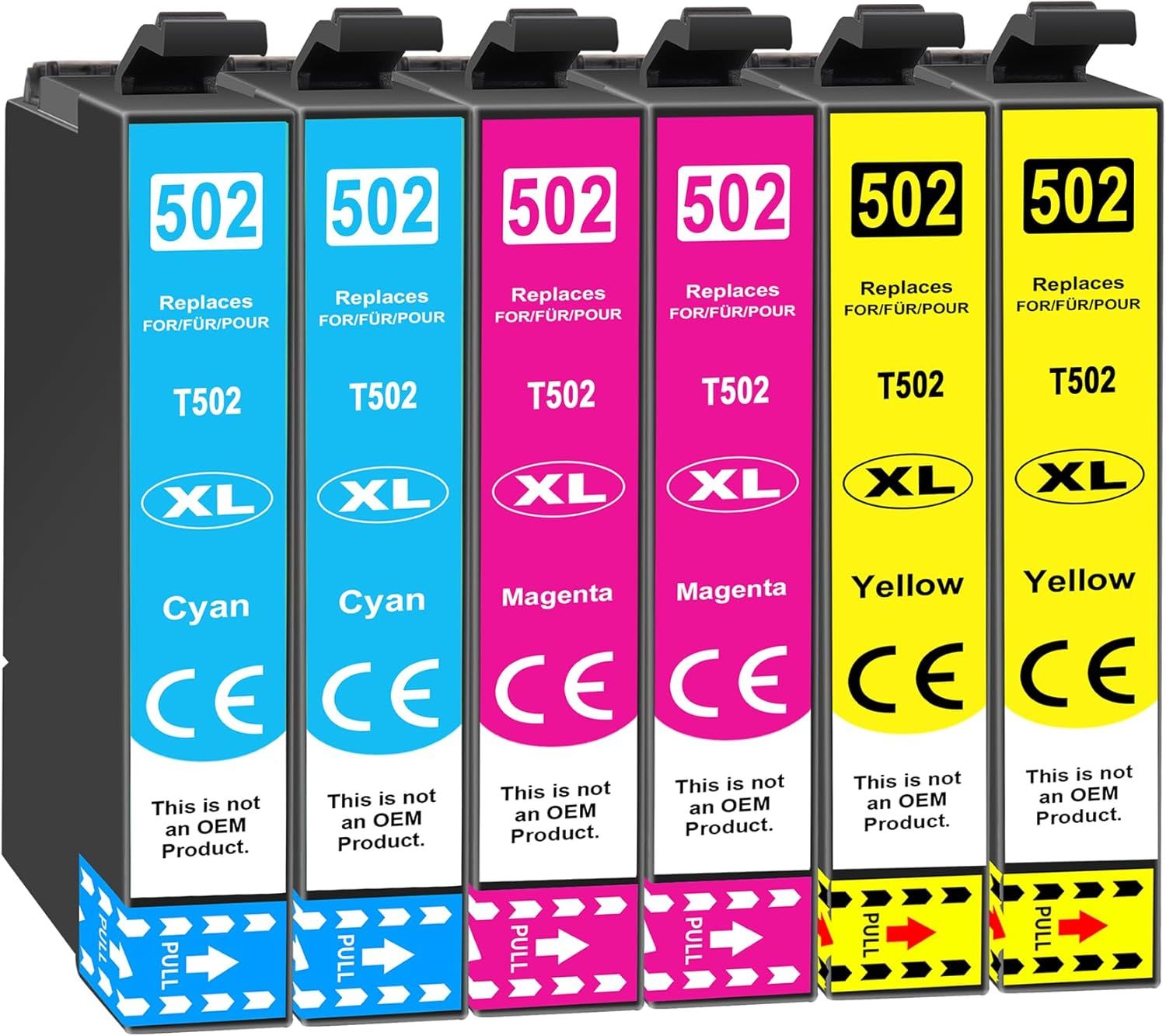 502 XL Cartouche Compatible pour Epson 502XL Cartouche d'encre pour Epson Workforce WF-2860 WF-2865 WF-2880 WF-2885 XP-5100 XP-5105 XP-5155 XP-5150, 6pack