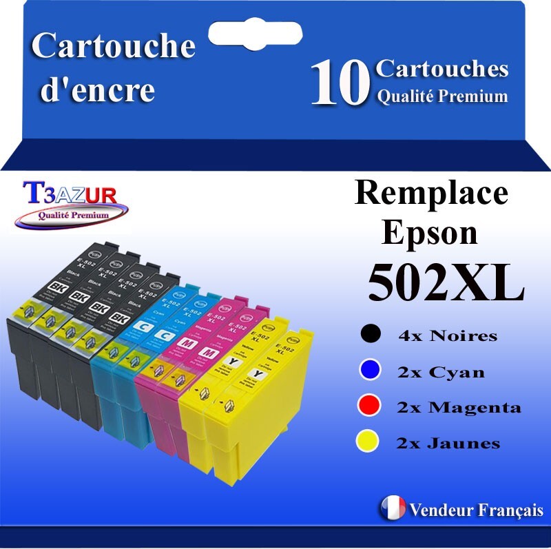 Cartouche compatible - 10 Cartouches d’Encre Epson 502XL Compatible pour Imprimante Epson WF 2860 WF 2865 WF 2880 WF 2885 XP 5100 XP 5105 XP 5150 XP 5115 XP 5155