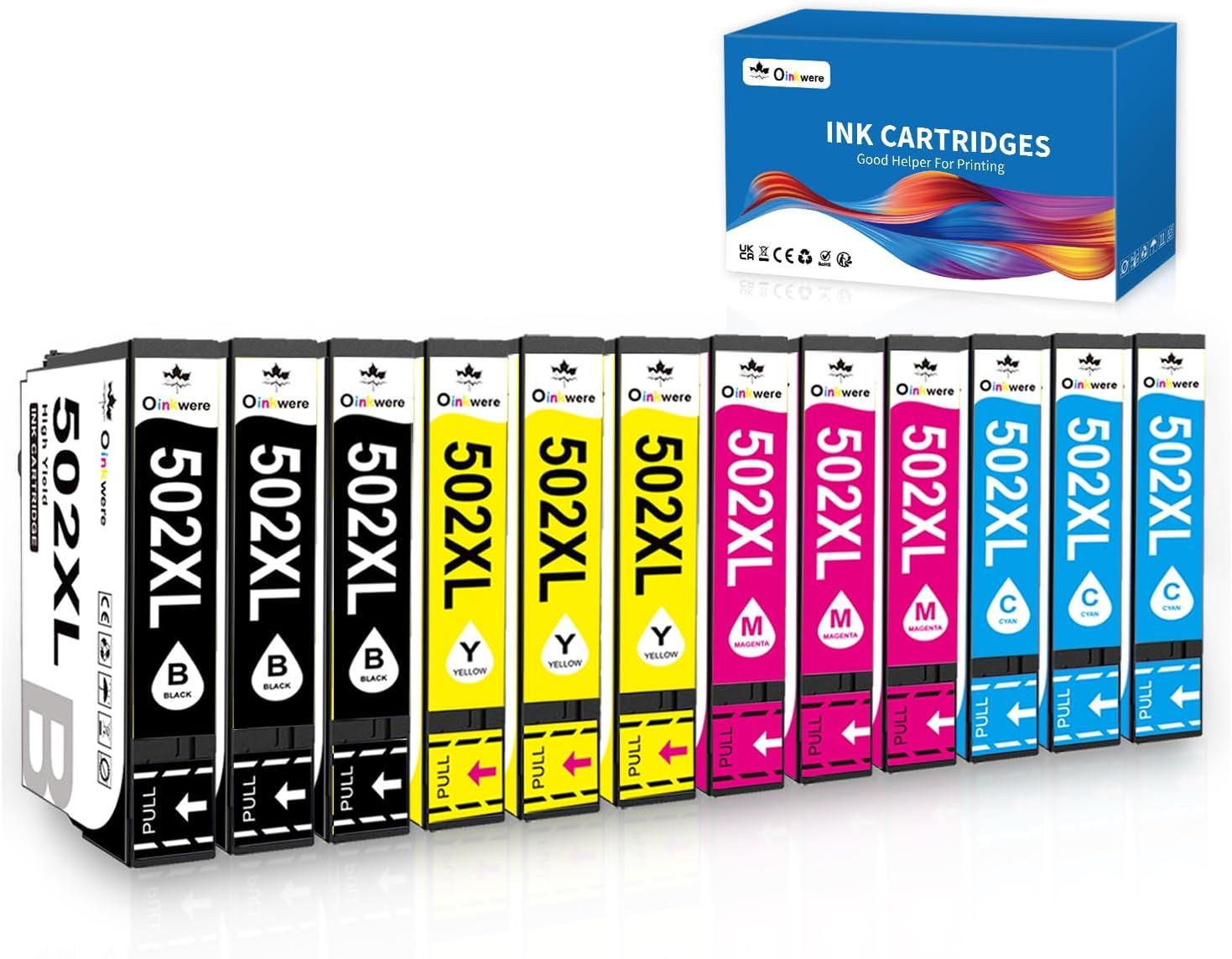 OINKWERE 502XL Cartouches d'encre Compatible pour Epson 502 XL Cartouches Multipack pour Expression Home XP-5150 XP-5100 XP-5155 XP-5105 Workforce WF-2860 WF-2865 WF-2880 WF-2885 (12 Paquets)