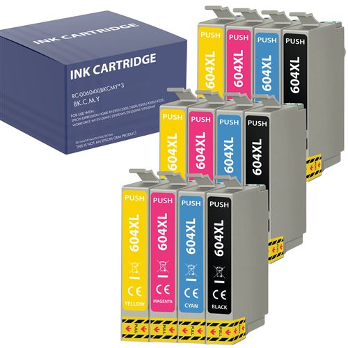 Pack 12 Cartouches d'encre remplacement pour Epson 604XL compatible Epson WorkForce WF-2910 WF2930 WF-2935 WF-2950 Expression Home XP-2200 XP-2205 XP-3200 XP-3205 XP-4200 XP-4205 - Pack 3 Noir 3 Cyan 3 Magenta 3 Yellow Phonillico®
