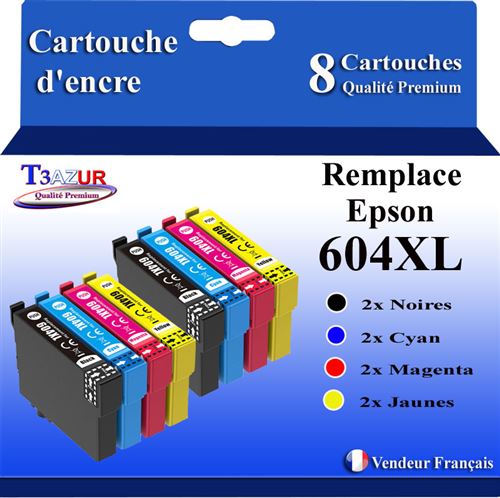 T3AZUR - 8x Cartouches compatibles avec Epson WorkForce WF-2910DWF, WF-2930DWF, WF-2935DW,F WF-2950DWF, 604 XL