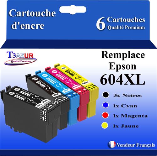 T3AZUR -6x Cartouches compatibles avec Epson WorkForce WF-2910DWF, WF-2930DWF, WF-2935DW,F WF-2950DWF, 604 XL