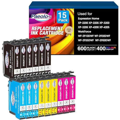Paeolos Compatible avec 604XL Cartouche d'encre pour Epson 604 604XL pour Expression Home XP-2200 XP-2205 XP-3200 XP-3205 XP-4200 XP-4205 Workforce WF-2910 WF-2930 WF-2935 WF-2950 (Paquet de 15)