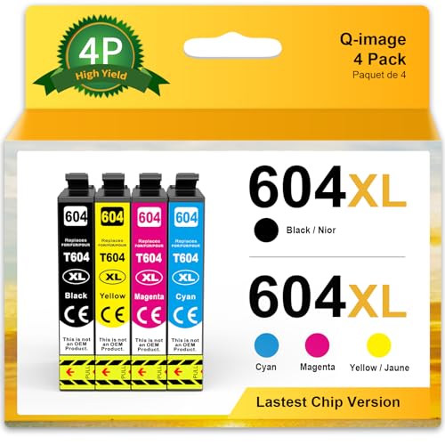 Q-image 604 XL Cartouches compatibles pour epson 604 pour Cartouche epson XP 2200 Epson XP-2205 XP-3200 XP-3205 XP-4200 XP-4205, Workforce WF-2910 WF-2930 WF-2935 WF-2950(1Noir 1Cyan 1Jaune 1Magenta)