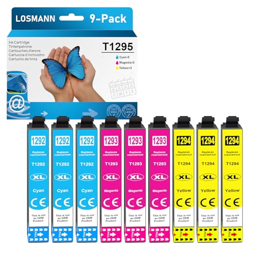 LOSMANN T1295 Cartouches d'encre compatibles pour Epson T1292 T1293 T1294 pour Workforce WF-3520 WF-3540 WF-7525 WF-7515 Stylus SX235W SX425W SX435W SX445W SX535WD BX630FW (9-Pack)